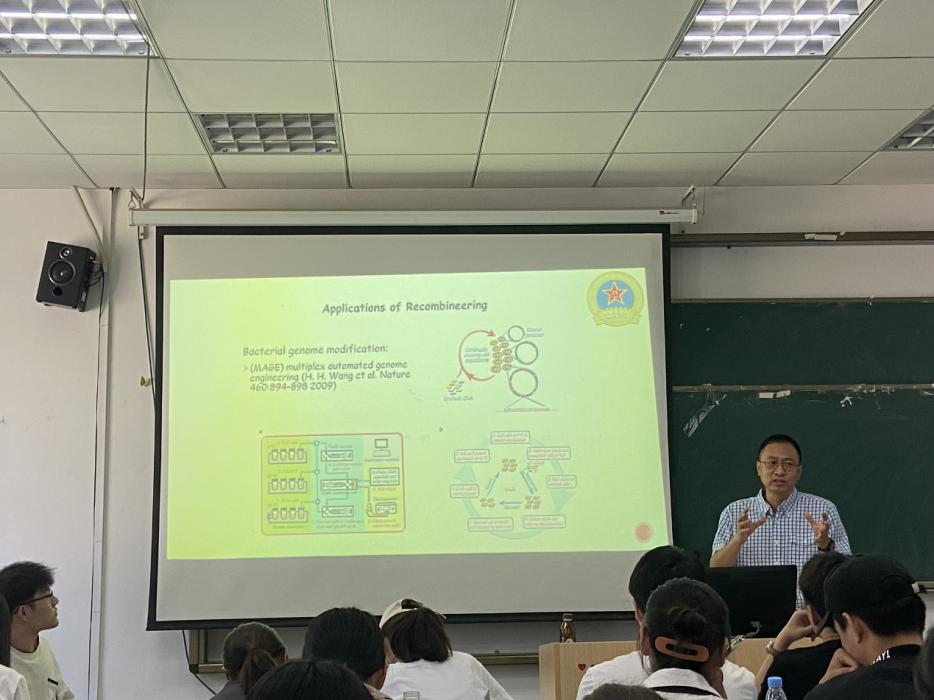 李山虎副研究员在报告中首先介绍了用于微生物基因组编辑的重组工程技术,然后向大家介绍了近年来发表的重组工程技术研究工作,最后介绍了在重组腺病毒疫苗、减毒布鲁氏菌疫苗研究中的相关应用。李老师的讲授,增强了学生们的理论知识,拓宽了同学们的视野。