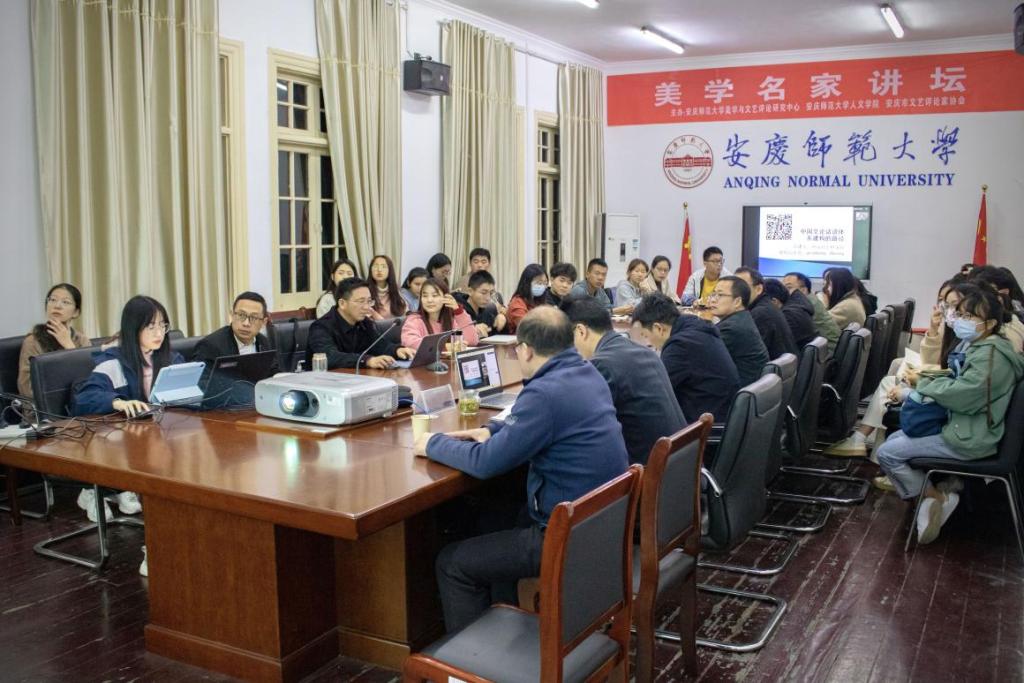11月4日,由人文学院、安徽省文艺评论基地beat365平台唯一官网美学与文艺评论研究中心和安庆市文艺评论家协会联合主办的“美学名家讲坛”第二讲在红楼二楼会议室顺利开讲。中华美学学会会长、中国中外文艺理论学会会长高建平教授应邀作了题为“怎样建立中国文论话语体系”的线上讲座。讲座由中心主任江飞教授主持,人文学院部分教师和硕士生、本科生近50人到场学习,线上参会人数逾400人。