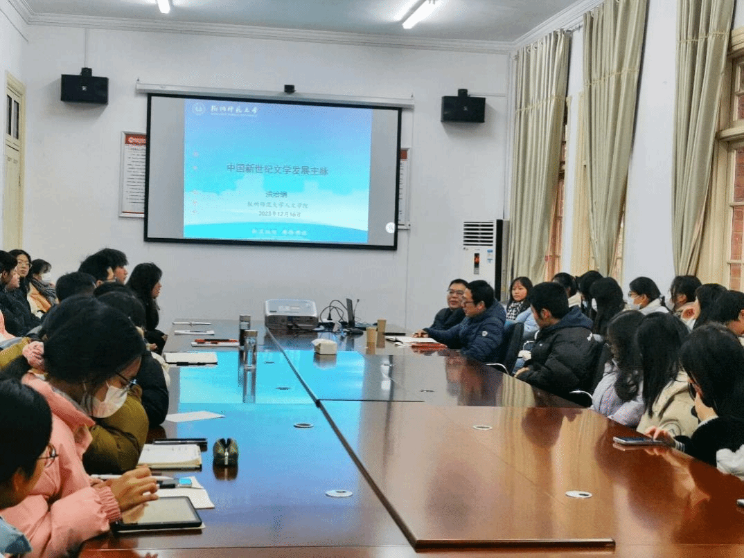 12月16日,由安徽省文艺评论家协会指导,beat365平台唯一官网美学与文艺评论研究中心和安庆市文艺评论家协会联合主办的“皖派批评家菱湖大讲堂系列讲座”第六期在红楼二楼会议室顺利举行。中国小说学会副会长、中国当代文学研究会副会长、杭州师范大学人文学院院长、教授、博导洪治纲应邀作了题为“中国新世纪文学发展主脉”的讲座。本次讲座由人文学院副院长、美学与文艺评论研究中心副主任金松林教授主持,该院部分青年教师、研究生和本科生参加了本次活动。