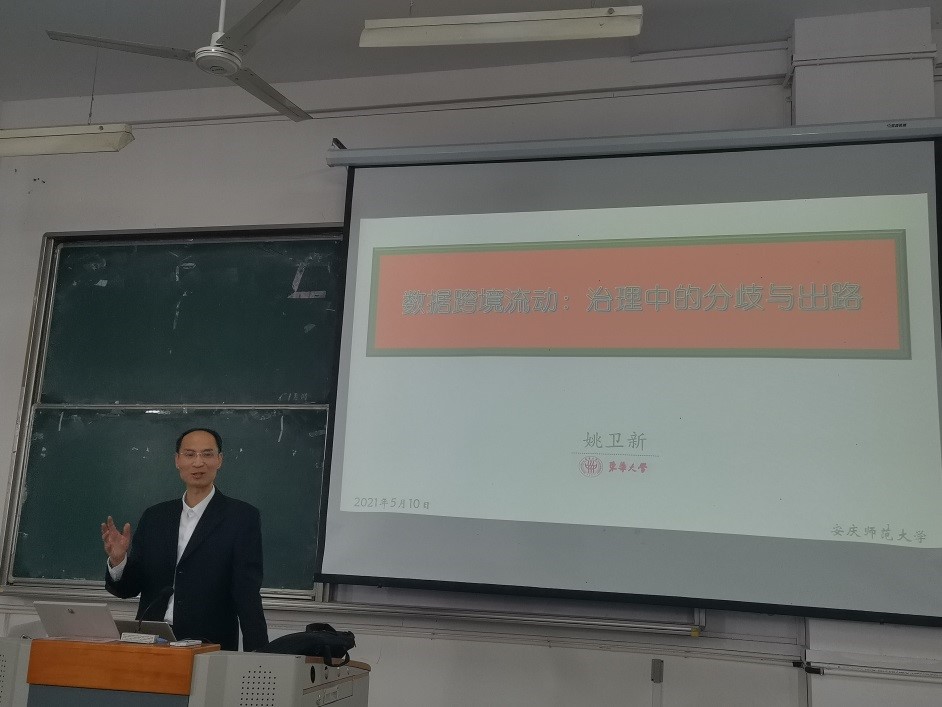 5月10日上午,东华大学姚卫新教授应邀前来beat365官网经济与管理学院,在C208报告厅作题为“数据跨境流动:治理中的分歧与出路”的学术报告。报告会由经济与管理学院院长杨国才教授主持,该院部分教师、统计学硕士以及2018级物流管理、电子商务专业本科生参加了报告会。