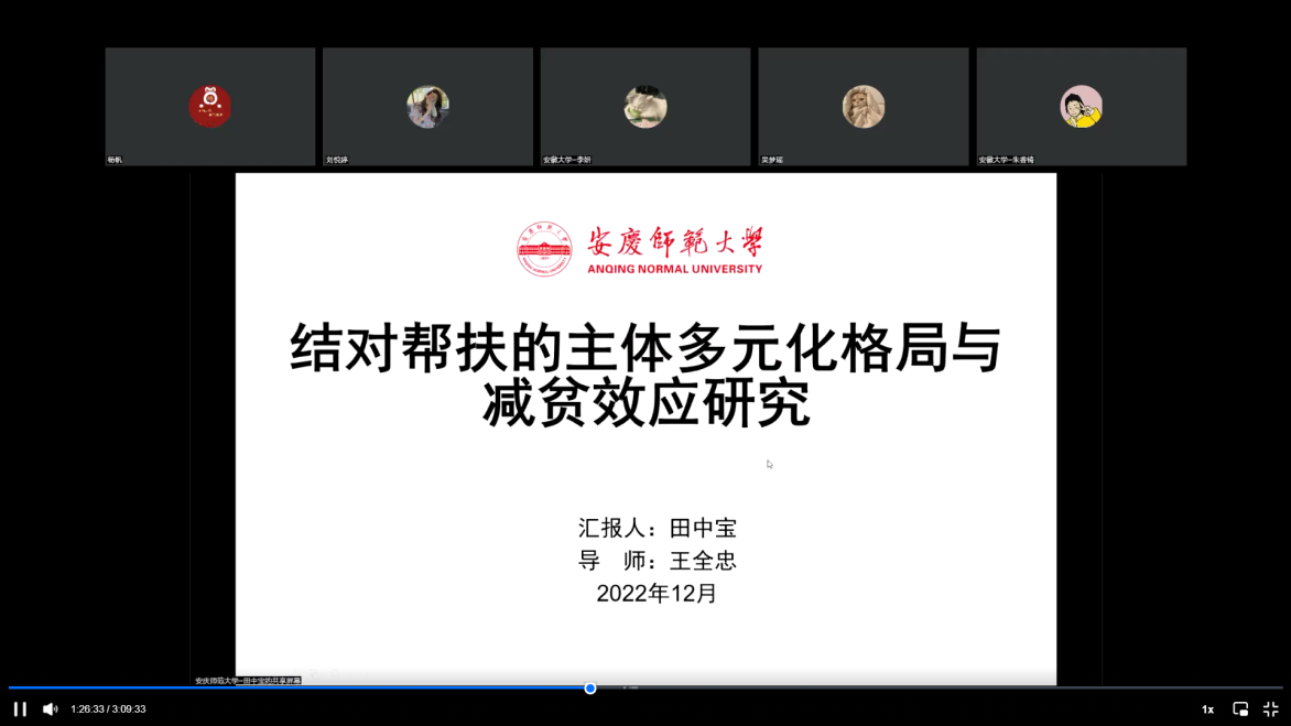 12月3日,“数字赋能乡村振兴与农业农村高质量发展”研讨会暨第十一届安徽三农学者论坛以在线形式召开。本次研讨会由安徽大学创新发展战略研究院、安徽大学农村改革与经济社会发展研究院和安徽大学中国三农问题研究中心主办,皖西学院经济与管理学院、中共六安市委组织部等单位承办,经济与管理学院2020级研究生田中宝作了汇报,部分研究生参加了线上会议。