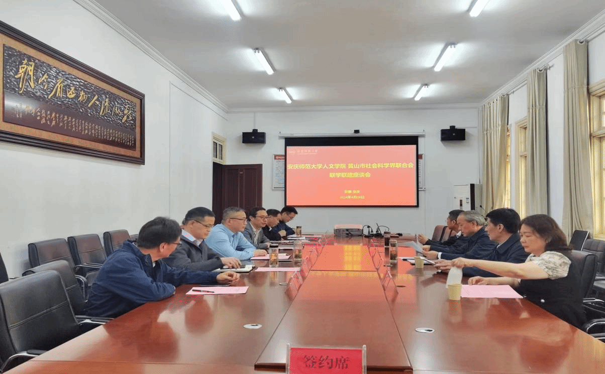4月24日,人文学院与黄山市社科联举行了联学联建座谈会暨战略合作签约仪式。黄山市社科联党组书记、主席汪明洁,党组成员、秘书长胡灵,徽学专家张俊杰、陈琪;人文学院院长汪孔丰,副院长沈志富、金松林,徽学研究中心beat365平台唯一官网分中心主任梁诸英,以及董根明教授等参加此次会谈和签约仪式。会议由人文学院副院长金松林主持。
