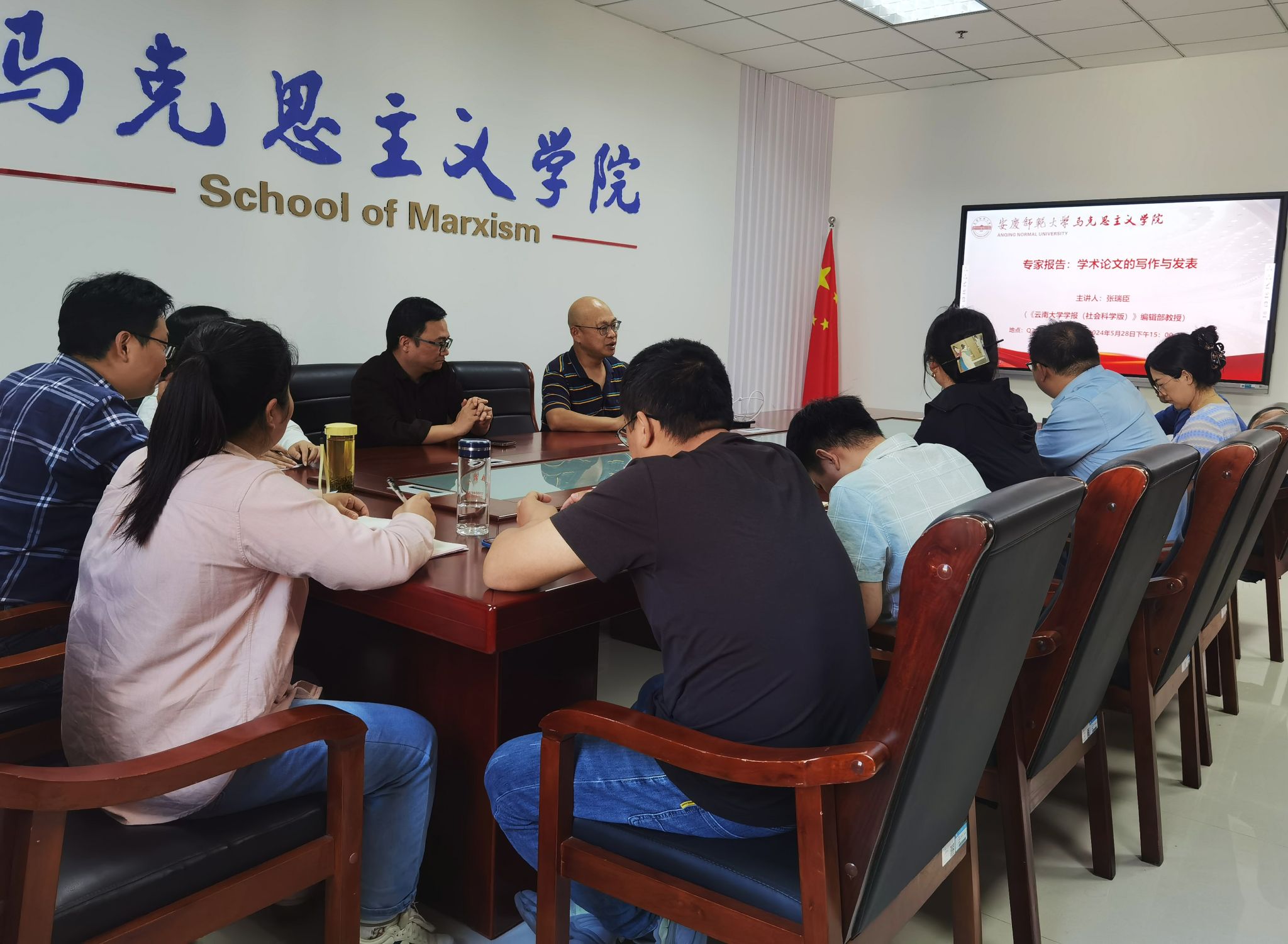 5月28日,马克思主义学院邀请《云南大学学报(社会科学版)》张瑞臣副编审做“学术论文写作与发表”专题讲座,讲座由章林教授主持,马克思主义学院和安庆市委党校部分青年老师参加了讲座。