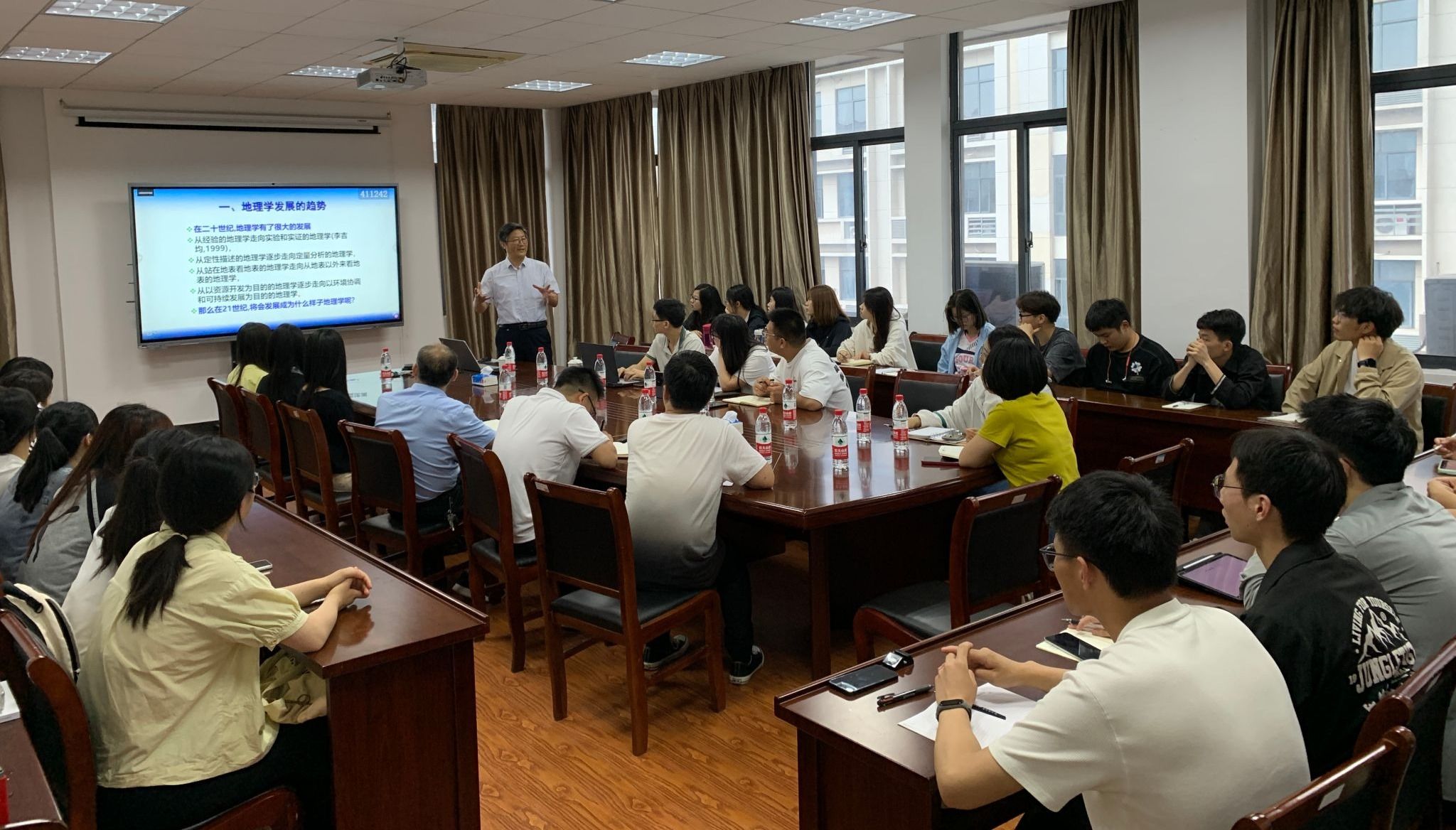 5月30日,教育部高校地理科学类专业教学指导委员会委员、著名学者王建教授应邀来beat365官网作《地理科学的发展趋势与新时代的地理学》的学术报告。报告由资源环境学院院长汪德进教授主持,该院部分老师、学科教学(地理)研究生、地理科学专业本科生聆听了报告。