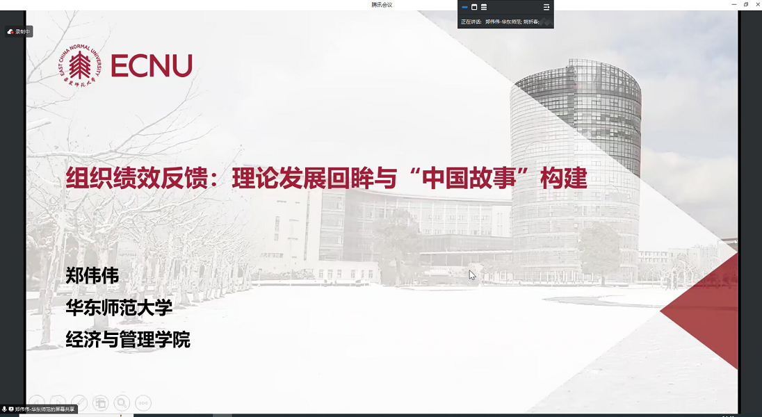 7月9日,由经济与管理学院主办、区域经济与城乡发展研究所和该院研究生党支部联合承办的研究生学术交流活动“优博讲坛”第13期开讲,来自华东师范大学的郑伟伟博士在线分享了题为《组织绩效反馈:理论发展回眸与“中国故事”构建》的学术报告,该院全体统计学、国际商务研究生、部分老师和本科生参加了交流活动,本次讲坛由姚祈春博士主持。
