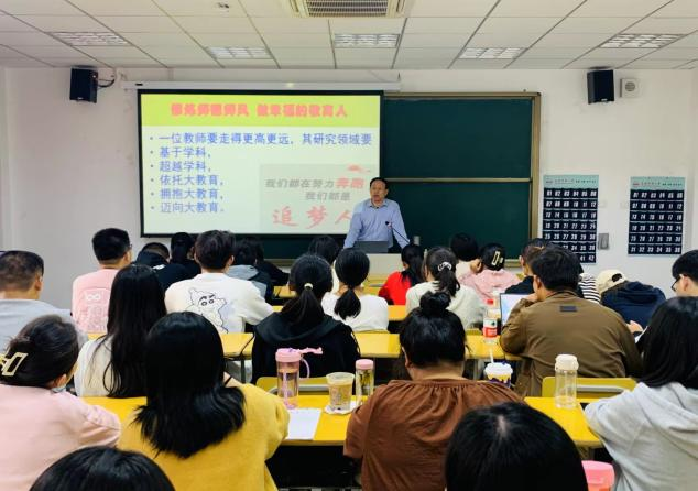 陈俊主任强调,师德师风是衡量教师队伍素质的第一标准,具备高素质的教师是实现高质量教育的根本前提。幸新时代的教师需具备三大核心素养:良好的职业态度、职业责任感以及扎实的职业本领。教师应树立福教育的梦想,构筑个人专业成长的梦想,追求打造魅力课堂的梦想,并积极探寻教育主张的梦想,最终成就科研兴教的梦想。
