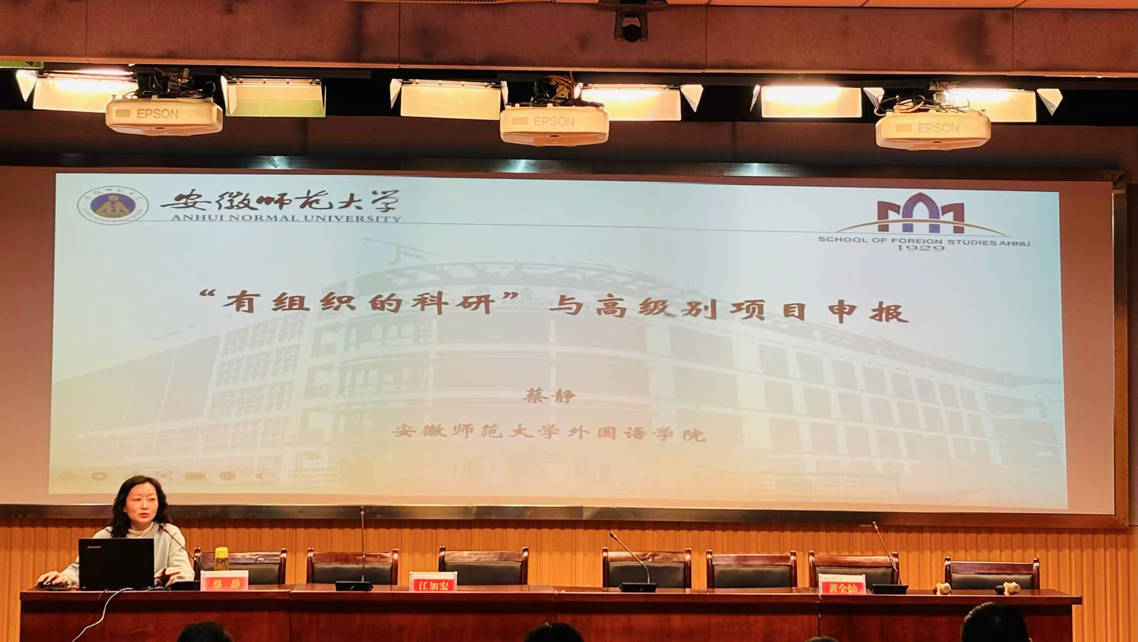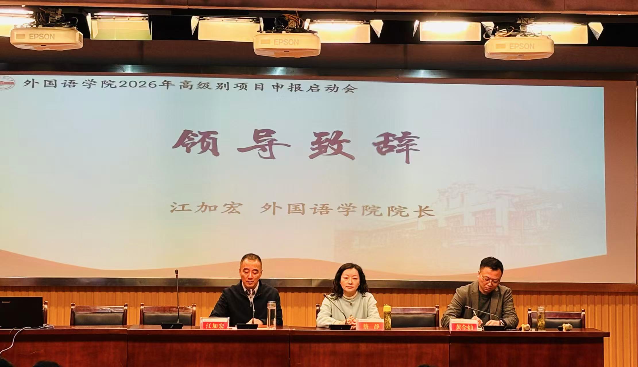 11月6日下午,外国语学院召开2026年高级别项目申报启动会暨科研平台建设与硕士研究生导师培训会,特邀安徽师范大学外国语学院科研副院长蔡静教授作题为《“有组织的科研”与高级别项目申报》的主旨报告。学院领导班子、全体副高级及以上教师、博士教师、青年教师共计六十余人参会。会议由副院长黄全灿主持。
