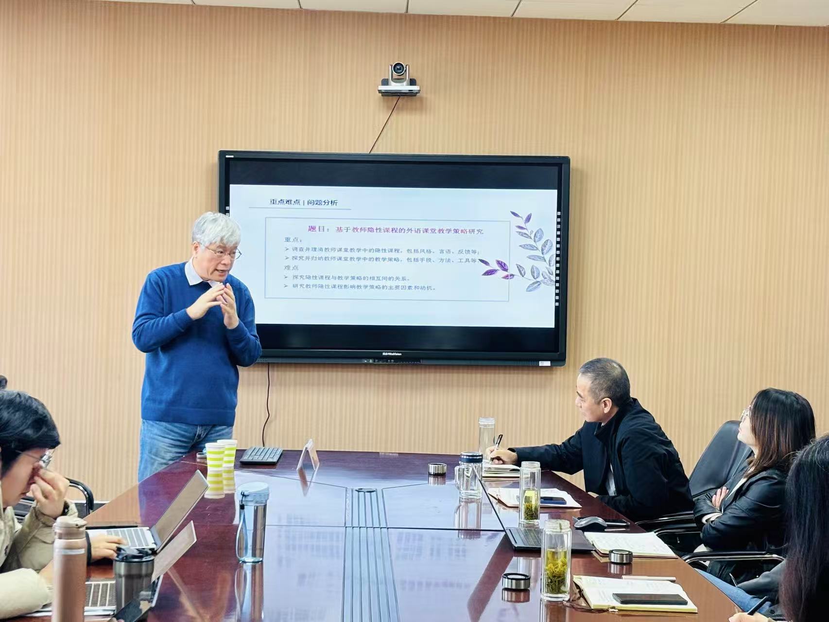 在交流研讨环节,陈坚林对参会教师的申报书初稿进行了针对性指导。他围绕选题表述的精准度、文献综述的完备性、研究设计的科学性以及逻辑框架的严密性进行了逐一点评,并就如何强化论证依据、凸显项目特色与教师们展开深入探讨。通过专家的点拨,申报人进一步厘清了研究思路,明确了优化方向。