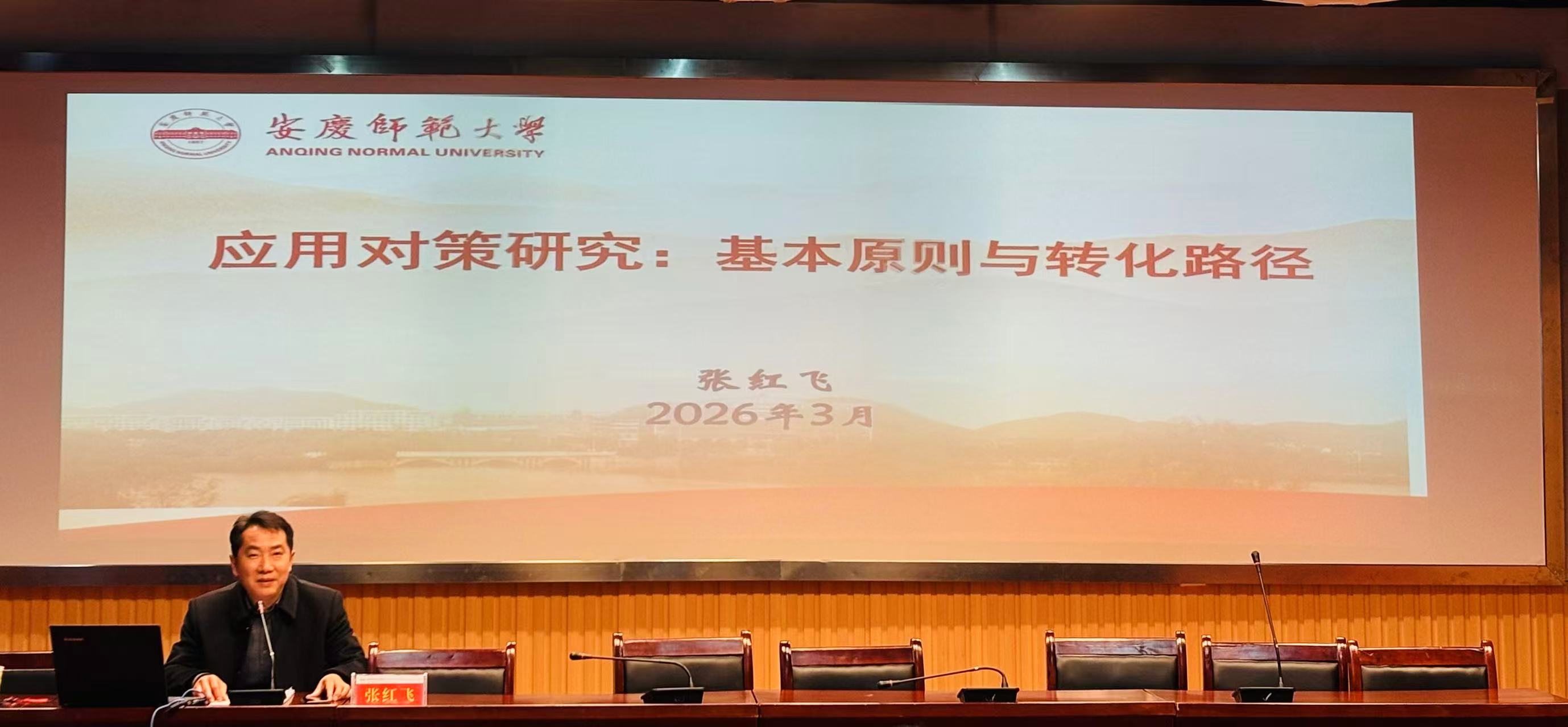 张红飞从“是什么、为什么、怎么写、怎么转化”四个维度,系统阐述了应用对策研究的重要意义、写作规范与转化路径。他认为,基础理论研究与应用对策研究相互支撑、互为转化,高校学者应当主动将学术积淀转化为服务国家治理和经济社会发展的智力支撑。报告从国家战略需求、安徽省委省政府决策部署和高水平大学建设等多个视角,深入阐释了咨政研究的价值导向与时代意义。