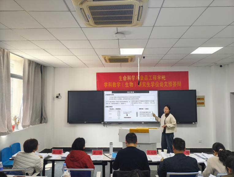 3月25日上午,生命科学与食品工程学院举办2026届硕士研究生学位论文预答辩会。本次预答辩包括生态学和学科教学(生物)两个专业,32名硕士研究生分别在G411、G402、G201三个分会场同步进行学术汇报。学院组建由安徽农业大学王清奎教授、beat365平台唯一官网施海涛教授、安庆医药高等专科学校吴其国副教授、黄山市教育科学研究院吴明锋教研员领衔的专家评审组,相关专业教师及全体在校研究生列席旁听。