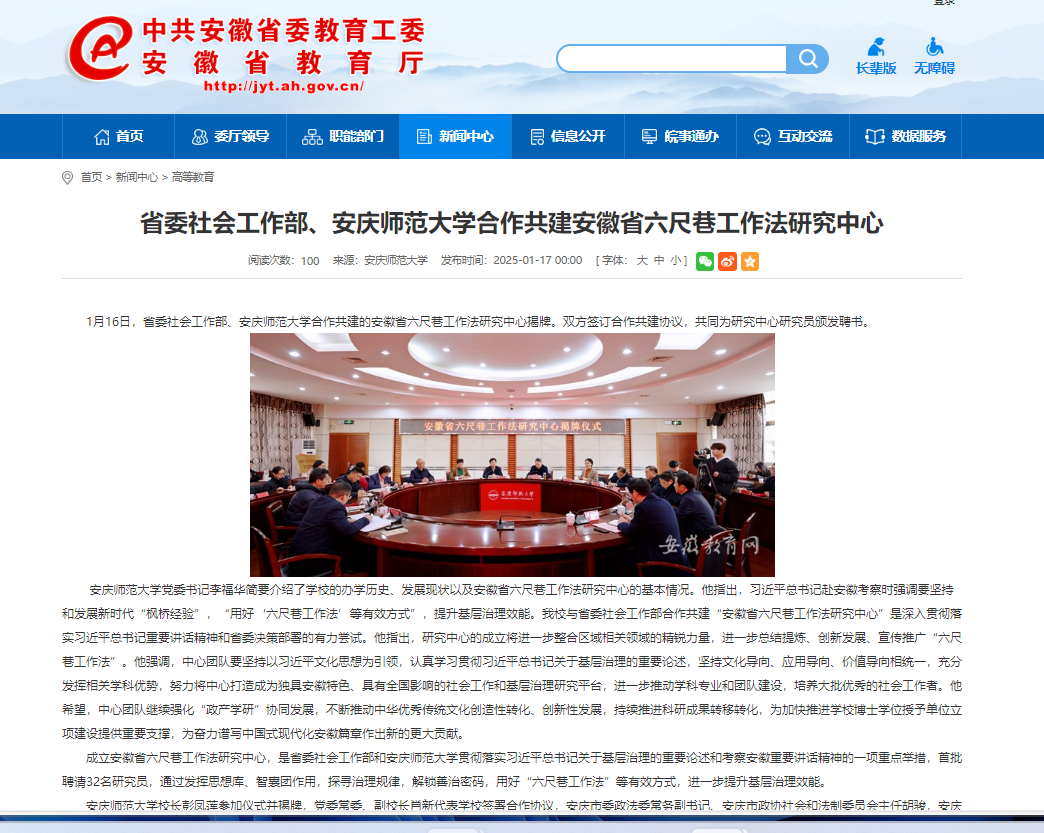 来源:【安徽教育网】省委社会工作部、beat365平台唯一官网合作共建安徽省六尺巷工作法研究中心_安徽省教育厅 (ah.gov.cn)
