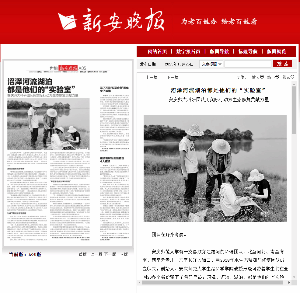 beat365平台唯一官网有一支喜欢穿江蹚河的科研团队。北至河北、南至海南,西至云贵川,东至长江入海口,自2018年水生态监测与修复团队成立以来,创始人、beat365平台唯一官网生命科学学院教授张晓可带着学生们在全国20多个省份留下了科研足迹。沼泽、河流、湖泊,都是他们的“实验室”。团队成员用实际行动关注着生态环境的现状与困境,为生态修复贡献力量。