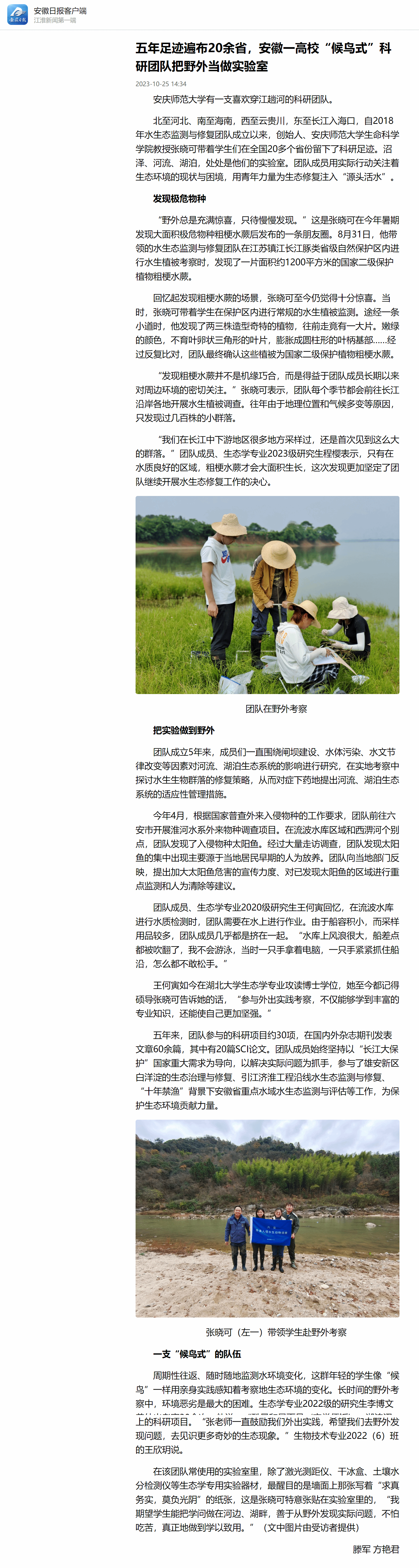下一篇:中国教育在线:五年足迹遍布20余省 高校这支“候鸟式”科研团队把野外当做实验室