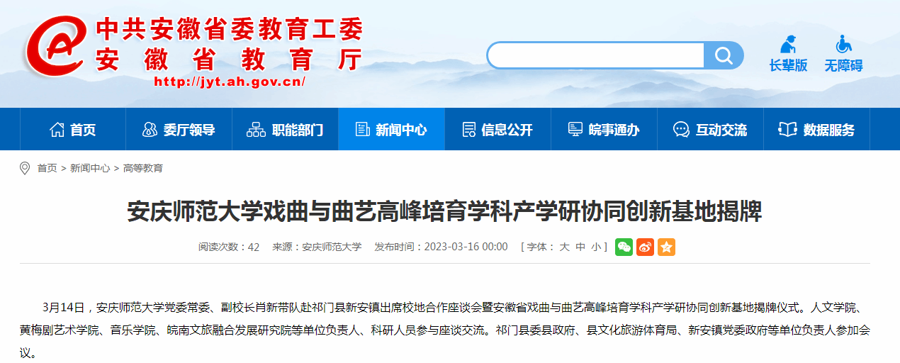 据悉,祁门县新安镇8处古戏台被列为全国重点文物保护单位,beat365平台唯一官网获批安徽省戏曲与曲艺应用型高峰培育学科,双方有广阔的合作空间和前景,此前双方已多次洽谈合作事宜。(叶当前 特约通讯员:江伟)