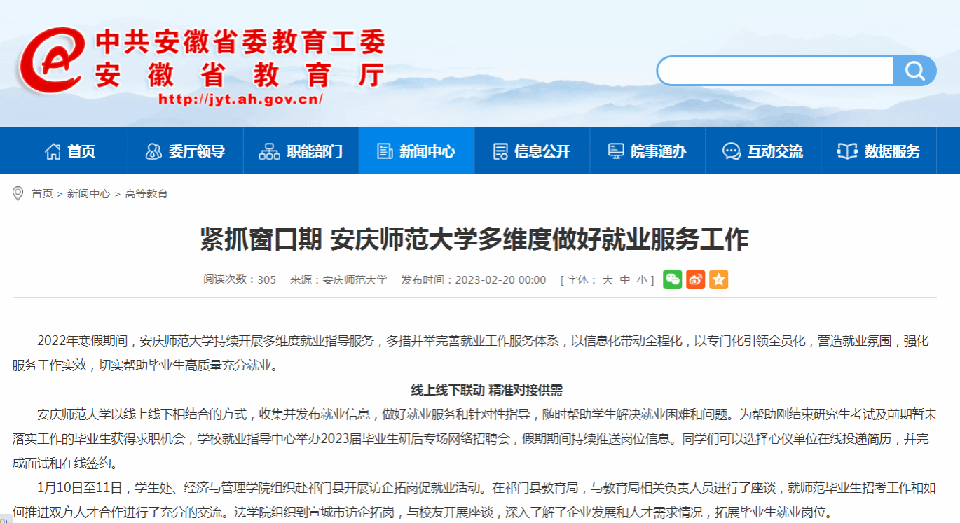 外国语学院建立2023届毕业生就业信息交流群,不定期发布就业相关信息和政策;传媒学院组织有求职意愿的毕业生赴芜湖相关企业现场参观,并与企业招聘负责人深入了解供需需求……各学院积极行动,为2023届毕业生就业创造良好条件。