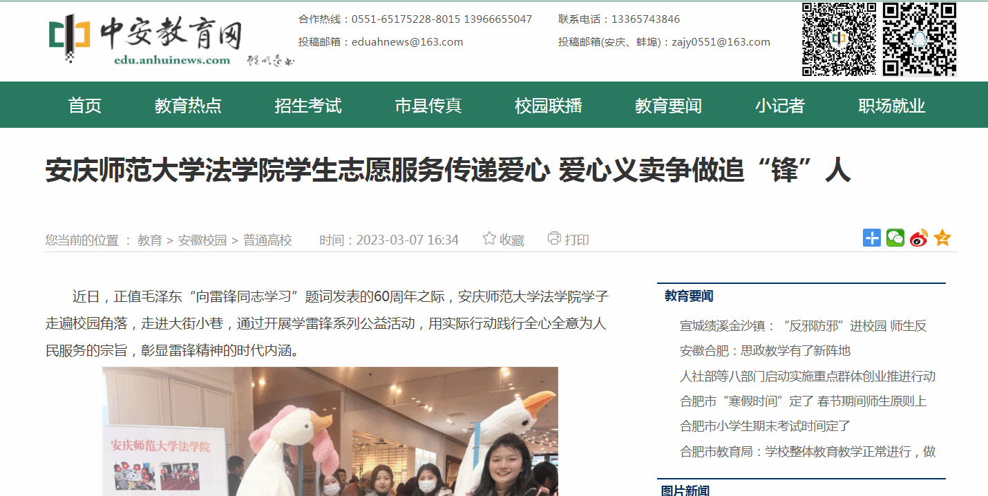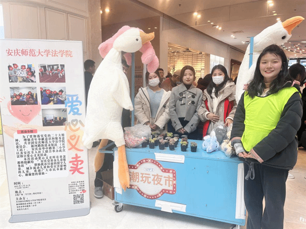 除了在安庆市街头为市民们普及法律知识,学院学生还在校内敬敷广场特设义卖“分会场”,将一系列学习雷锋精神的行动“搬”进校园,让公益之爱“辐射”到校园的每个角落。