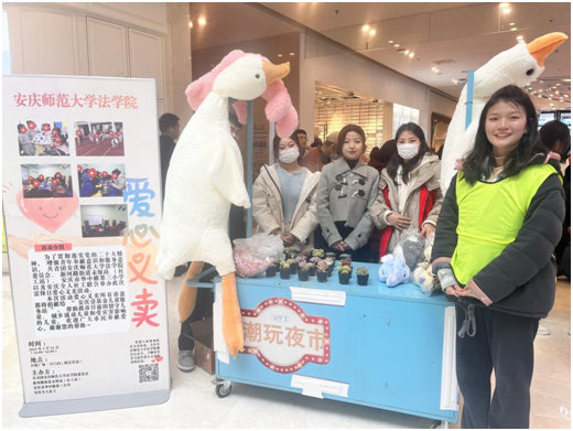 除了在安庆市街头为市民们普及法律知识,学院学生还在校内敬敷广场特设义卖“分会场”,将一系列学习雷锋精神的行动“搬”进校园,让公益之爱“辐射”到校园的每个角落。
