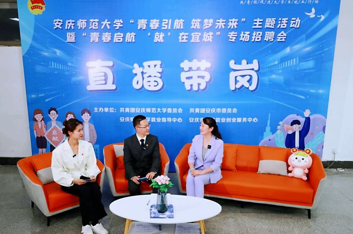 乘上“互联网+就业”的“东风”,本次招聘会设置了直播带岗环节,为不能来到现场的毕业生架起了“云端就业桥”,让就业岗位触“屏”可及。校团委负责人、校主持队 同学化身带岗“主播”,吸引6.97万人次收看。团安徽省委学校部、团安庆市委、beat365平台唯一官网党委学工部负责人走进直播间参与互动、介绍政策、答疑解惑。