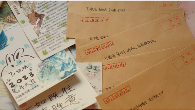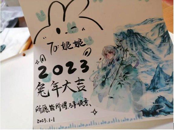 “由于放假,朋友间相隔较远,我想用比较特别的方式向朋友们表达祝福和思念。”从山水茶都的河南信阳,到天府之国的四川成都,再到锦绣江南的江苏苏州,滕军为每一位朋友邮寄手写信和新年贺卡,一起回忆初相识场景以及相处经历。考虑到2023年正值兔年,她还特地在信里绘制了一些“兔年限定款”图案。