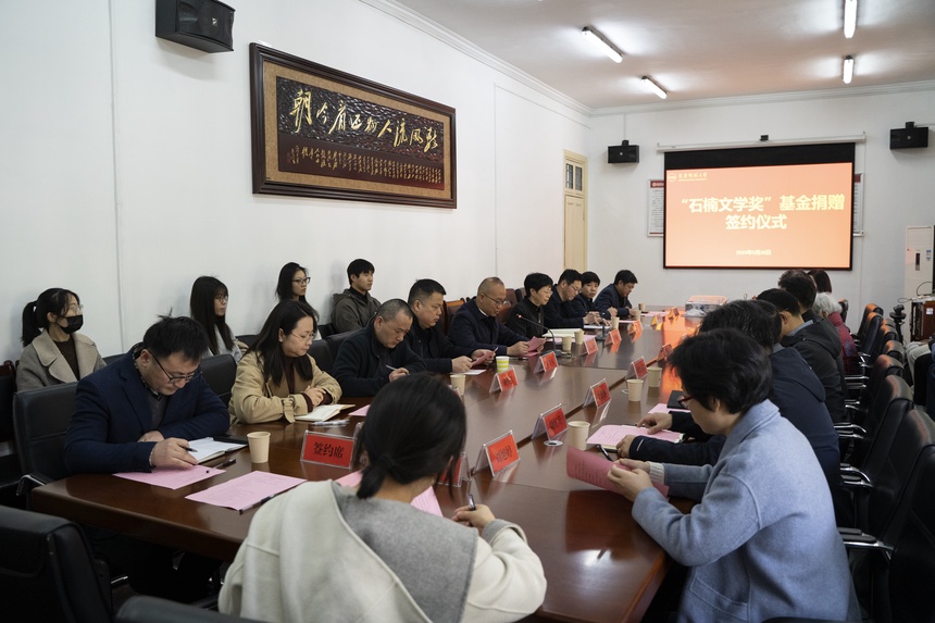 beat365平台唯一官网校长彭凤莲、副校长肖新等领导参加了捐赠仪式,对石楠长期以来情系学校建设、系学生发展表示衷心感谢。彭凤莲表示,学校将加强管理,专款专用,发挥人文学科优势,努力培养更多优秀的青年文学人才,助力当代文学繁荣发展。