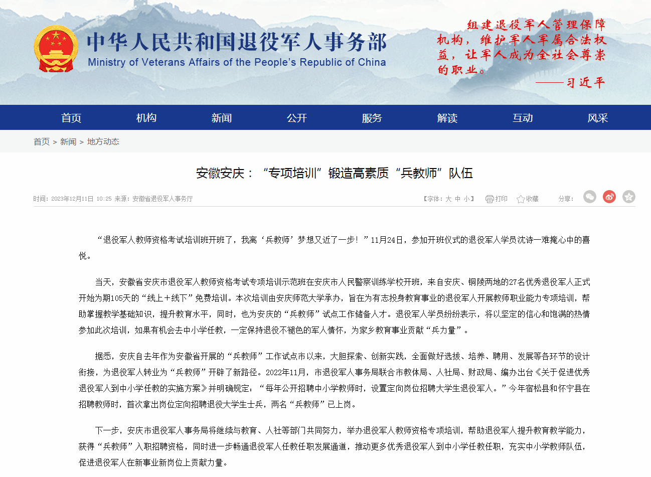 来源:【中华人民共和国退役军人事务部】https://www.mva.gov.cn/xinwen/dfdt/202312/t20231208_94412.html