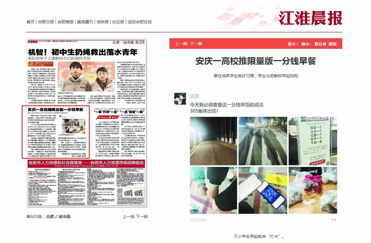 另外一名购买了“一分钱早餐”的男生也说:“我是偶然间看到的这个活动信息,买到后立即向周边的朋友分享了这个活动。早餐很美味,也不是预制菜,以前从未有过类似活动,感觉很有意思。”