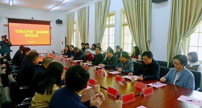 3月28日,“石楠文学奖”基金捐赠签约仪式在beat365平台唯一官网菱湖校区举行。著名作家石楠、校长彭凤莲出席仪式,党委宣传部、科研处、教务处、财务处、校友总会办公室、学生处、团委等相关部门负责人,人文学院党政领导班子及师生代表参加仪式。捐赠仪式由校党委常委、副校长肖新主持。