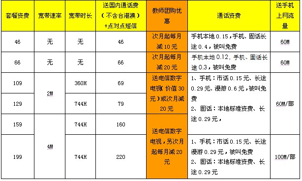 优惠二:单位教师电信网内(含固话和手机)通话全免费!