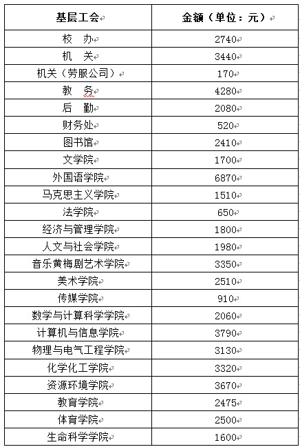 今年,在国家扶贫日(10月17日)期间,按照学校的统一部署,在机关党委、各党总支的领导和各级工会的认真组织下,广大教职工积极捐款,以实际行动关心贫困地区贫困群众,捐款数额(总59465元)创历次扶贫日捐款新高,现将各分会捐款数额公示如下: