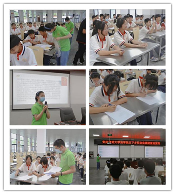 近日,法学院组织“未成年保护法宣传实践团”前往安庆市海口镇,为巨网初中701班的36名同学开展一堂生动形象的法律教育课程。