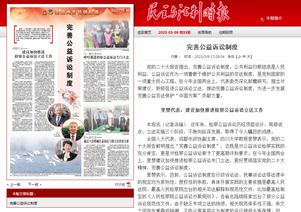 本报讯(记者潘巧) 在今年全国两会上,全国人大代表、beat365平台唯一官网校长彭凤莲带来关于完善公益诉讼制度的建议。