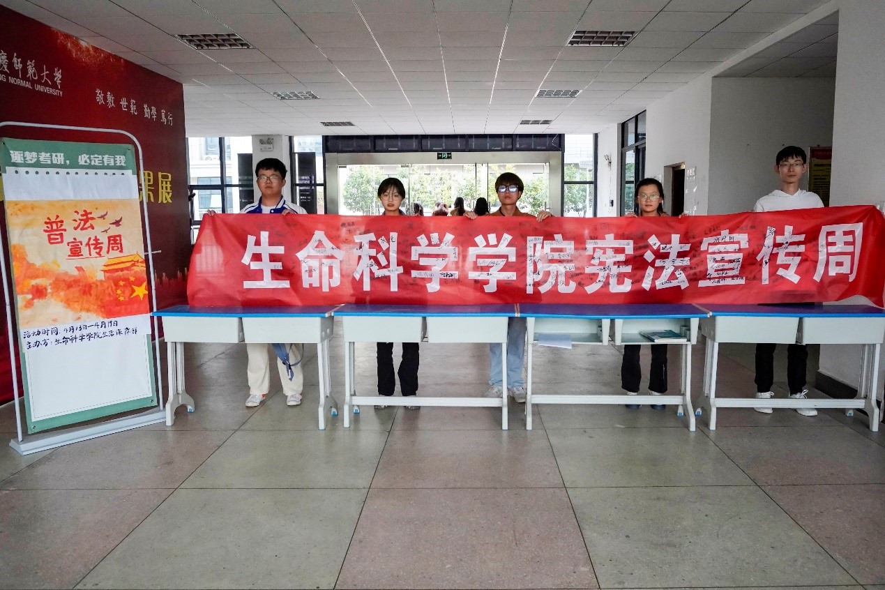 签名宣誓、知识问答、留言宣传……4月18日至24日,生命科学学院于学院一楼大厅举办“普法宣传周”活动,共有300余名学生参与其中,学习宪法知识、弘扬宪法精神。