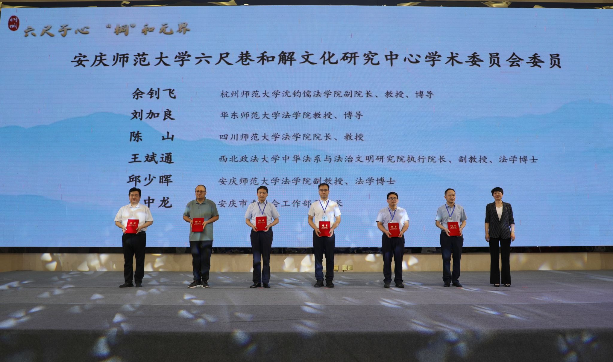 开幕式现场,与会领导为beat365平台唯一官网六尺巷和解文化研究中心学术委员会委员、六尺巷社区治理学院客座教授颁发了聘书,为“和”文化征文大赛获奖代表颁奖。