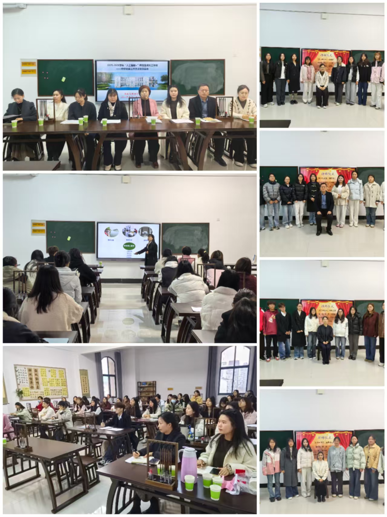 活动伊始,张梅老师详细解读了本学年工作坊的工作方案与具体要求,为坊员们明确学习方向与实践重点。随后进行了庄重的“拜师仪式”,各组坊员代表依次上台向坊主老师鞠躬致敬,并合影留念。