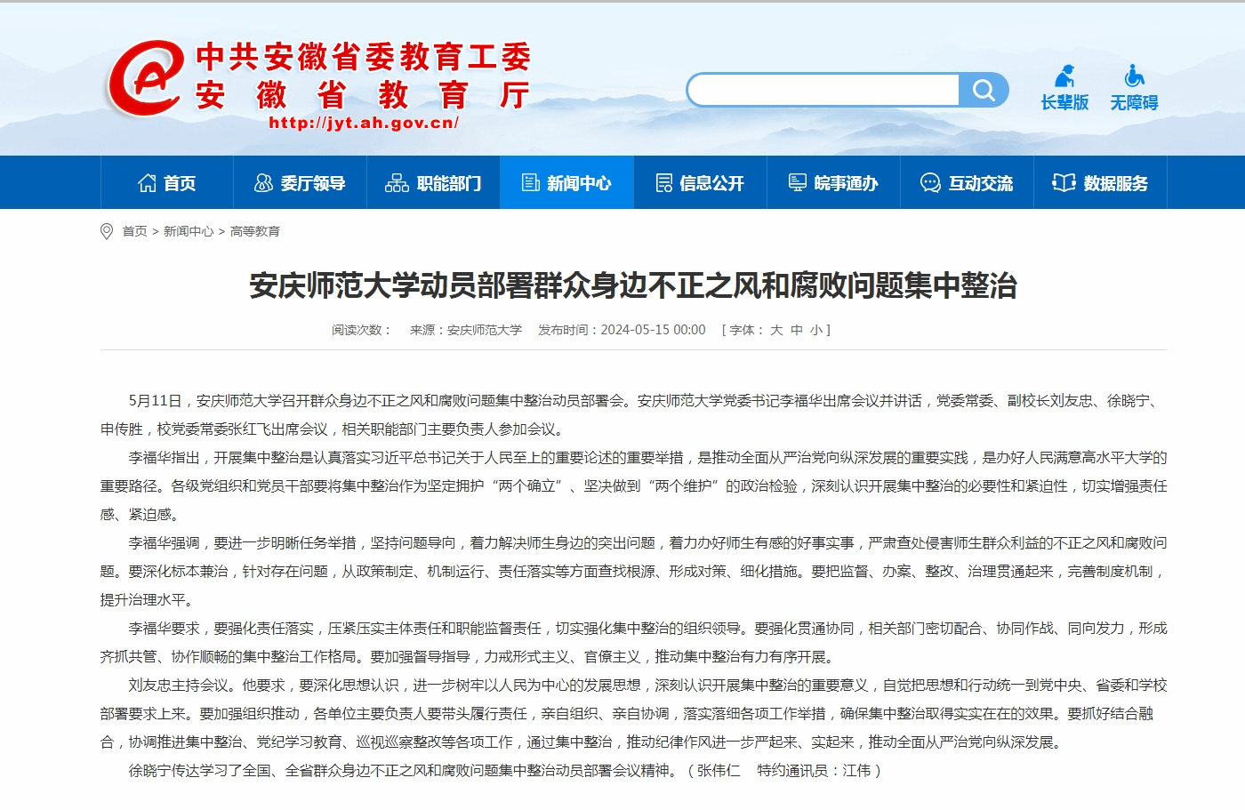 上一篇:安徽教育网:带头学纪知纪明纪守纪 beat365平台唯一官网党委举办党纪学习教育读书班