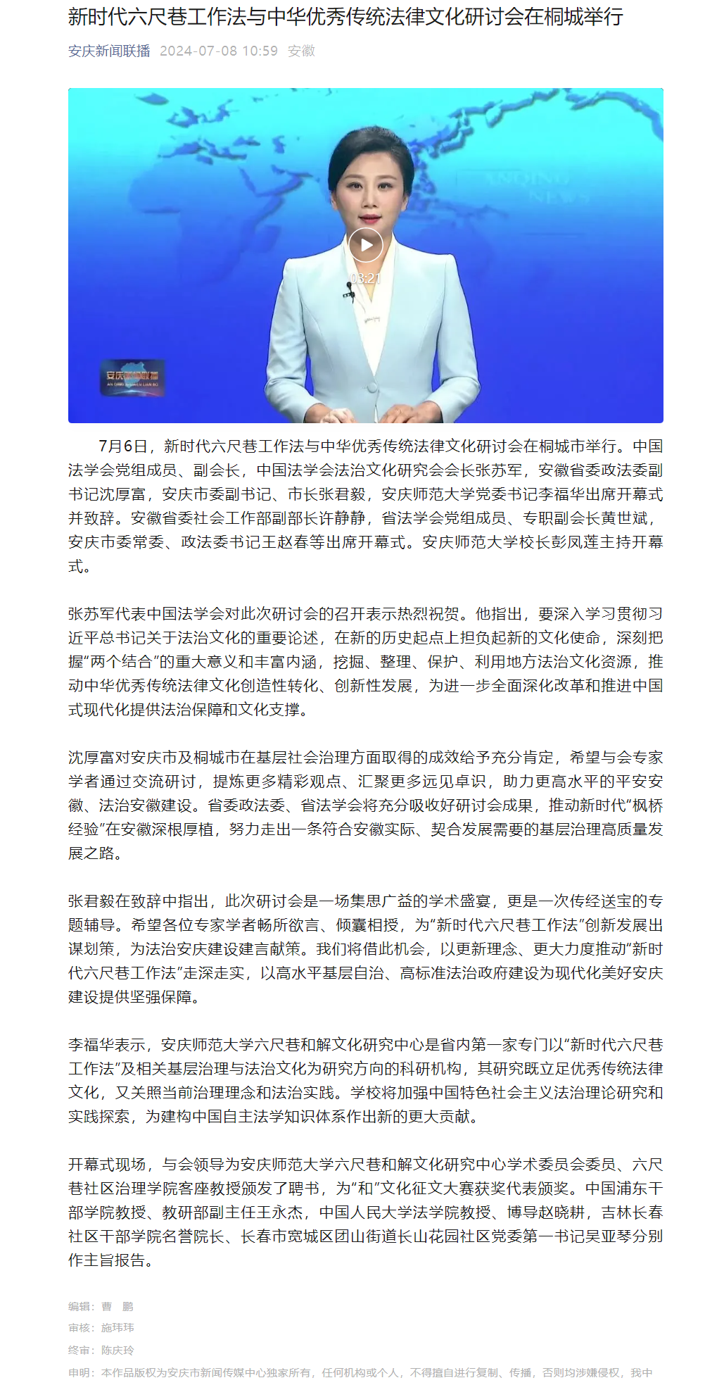 下一篇:安徽新闻联播:新时代六尺巷工作法与中华优秀传统法律文化研讨会在桐城市举行