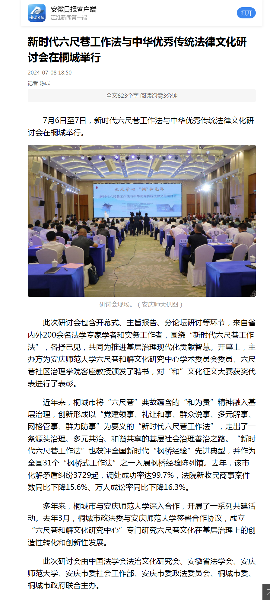 上一篇:民主与法制时报:“新时代六尺巷工作法与中华优秀传统法律文化研讨会”在安徽桐城召开