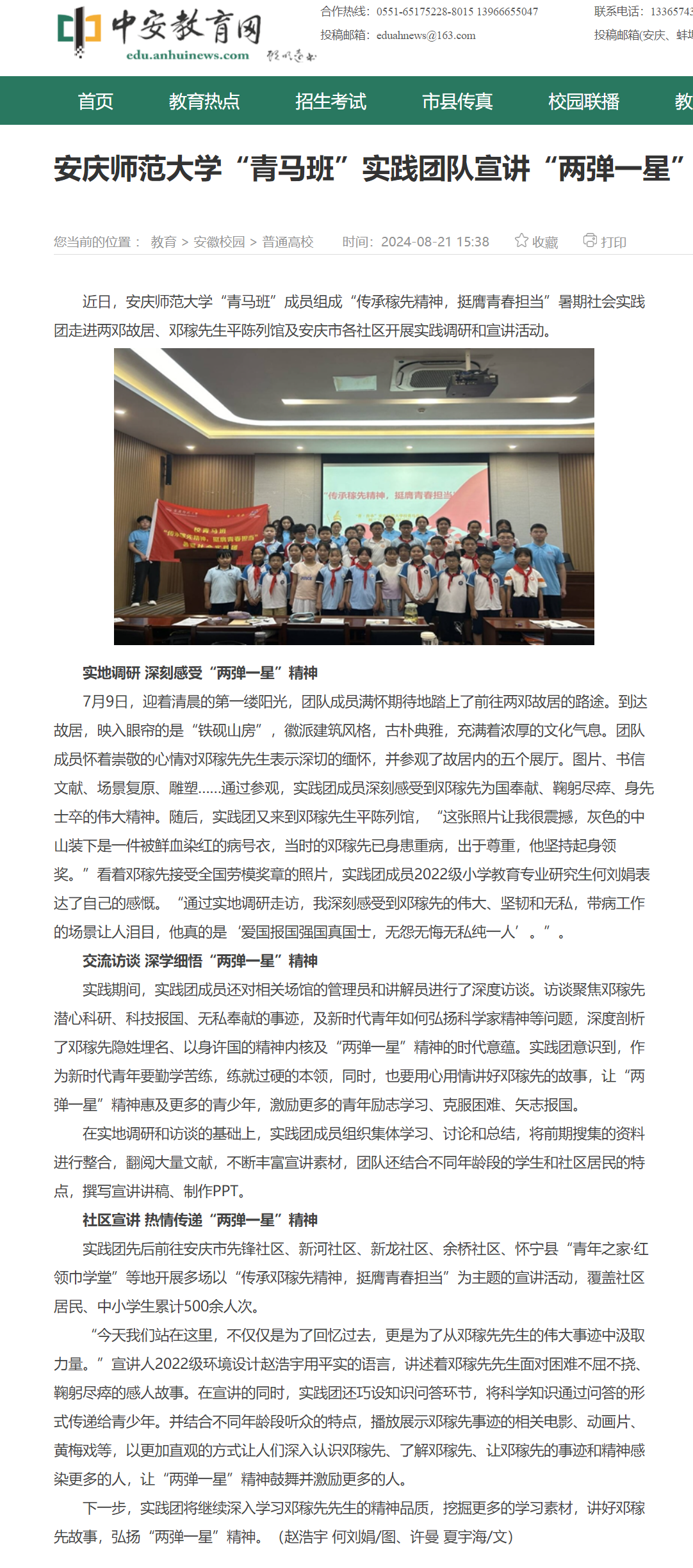 下一篇:安徽新闻网:安庆师大“青马班”实践团队开展“两弹一星”精神调研及宣讲活动