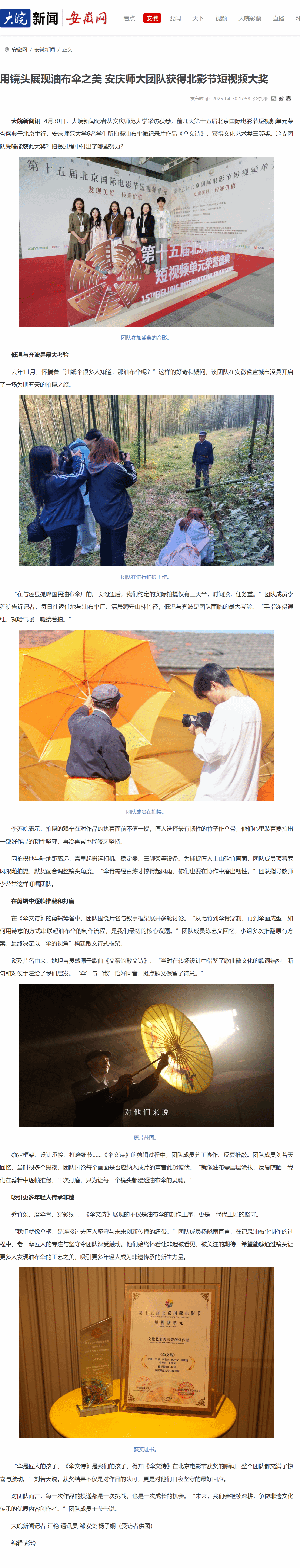 上一篇:学习强国:从竹林到银幕 安庆师大学子用镜头守护油布伞非遗记忆