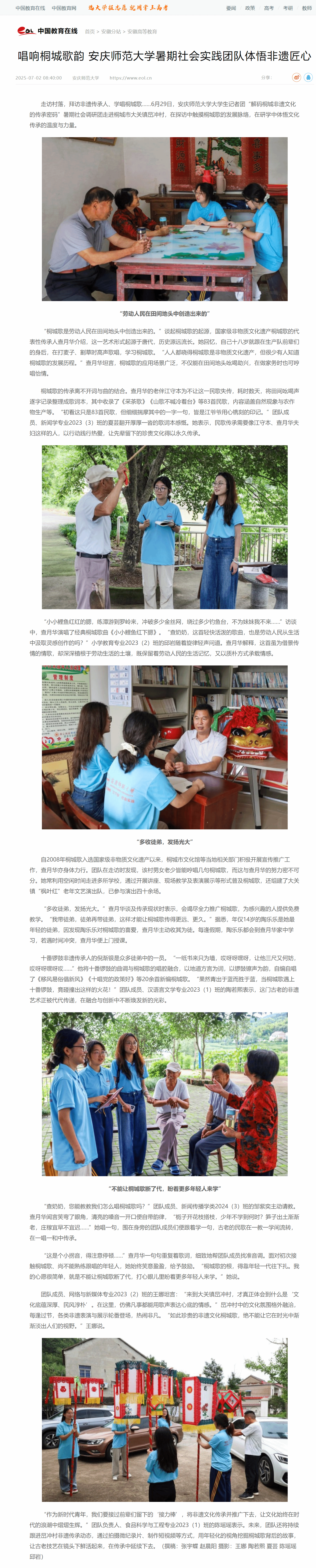 下一篇:中国网:以实践触摸文脉 安庆师大学子赴六尺巷感悟“礼让”精神