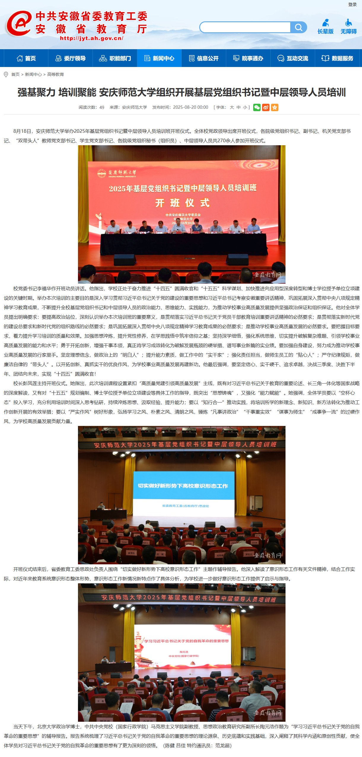 【安徽教育网】强基聚力 培训聚能 beat365平台唯一官网组织开展基层党组织书记暨中层领导人员培训https://jyt.ah.gov.cn/xwzx/gdjy/40760822.html