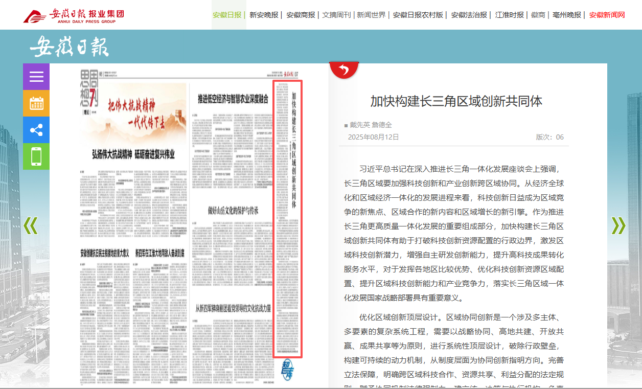 【安徽日报】加快构建长三角区域创新共同体https://szb.ahnews.com.cn/ahrb/layout/202508/12/node_06.html#c1099582