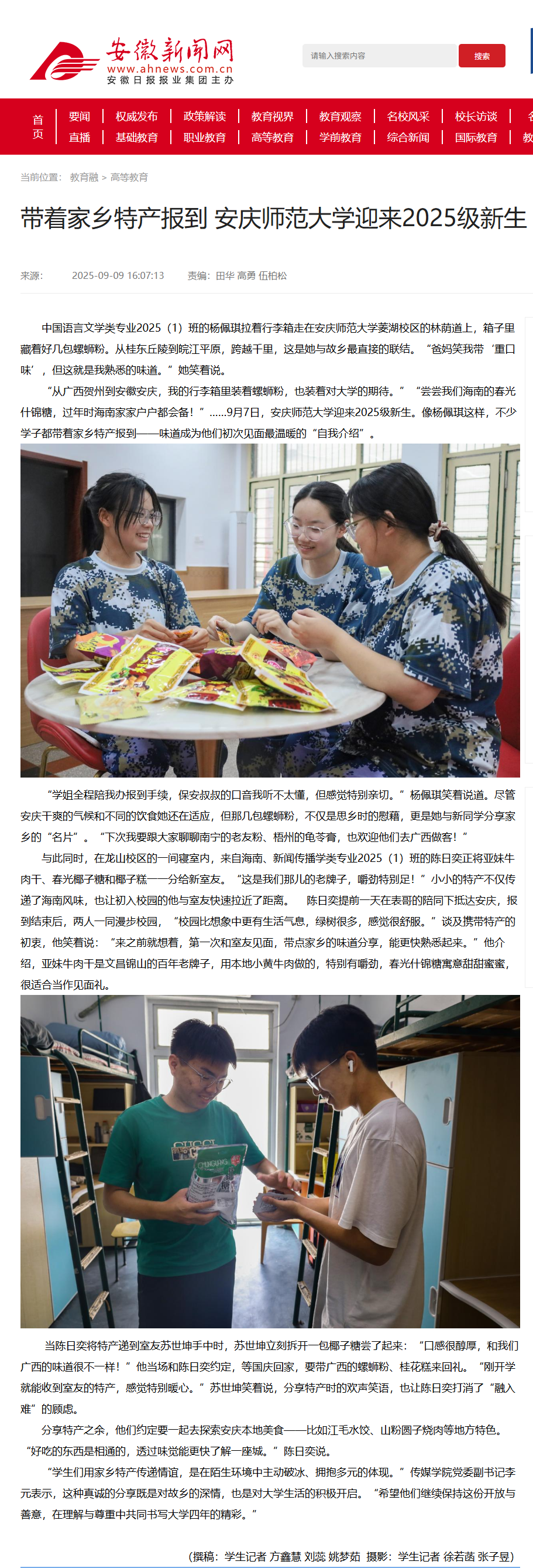 【安徽新闻网】带着家乡特产报到 beat365平台唯一官网迎来2025级新生http://xxt.ahnews.com.cn/news/2025/09/09/c_40170.htm