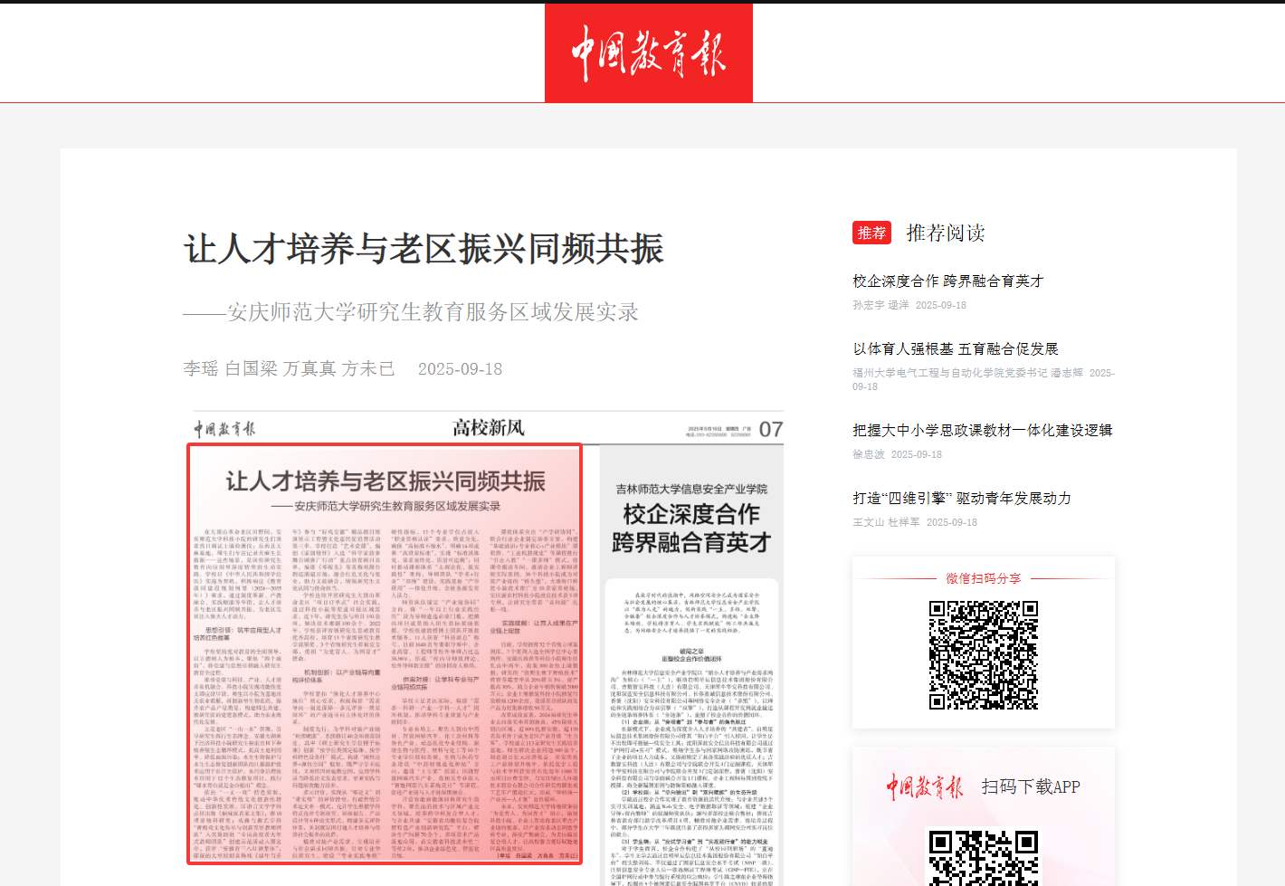 【中国教育报】让人才培养与老区振兴同频共振 ——beat365平台唯一官网研究生教育服务区域发展实录https://share.app3.jyb.cn/paper_d/927fef9fc832f77fa7cd7858f92e37de?from=VjZDc29lWmRlREZnUWRtcXVVam1CTmltUUNUZlRyTzVyL0ZERllQcmFXT0RrT2FvVGRGTXFuNHl0ZVd2N1Axdg==