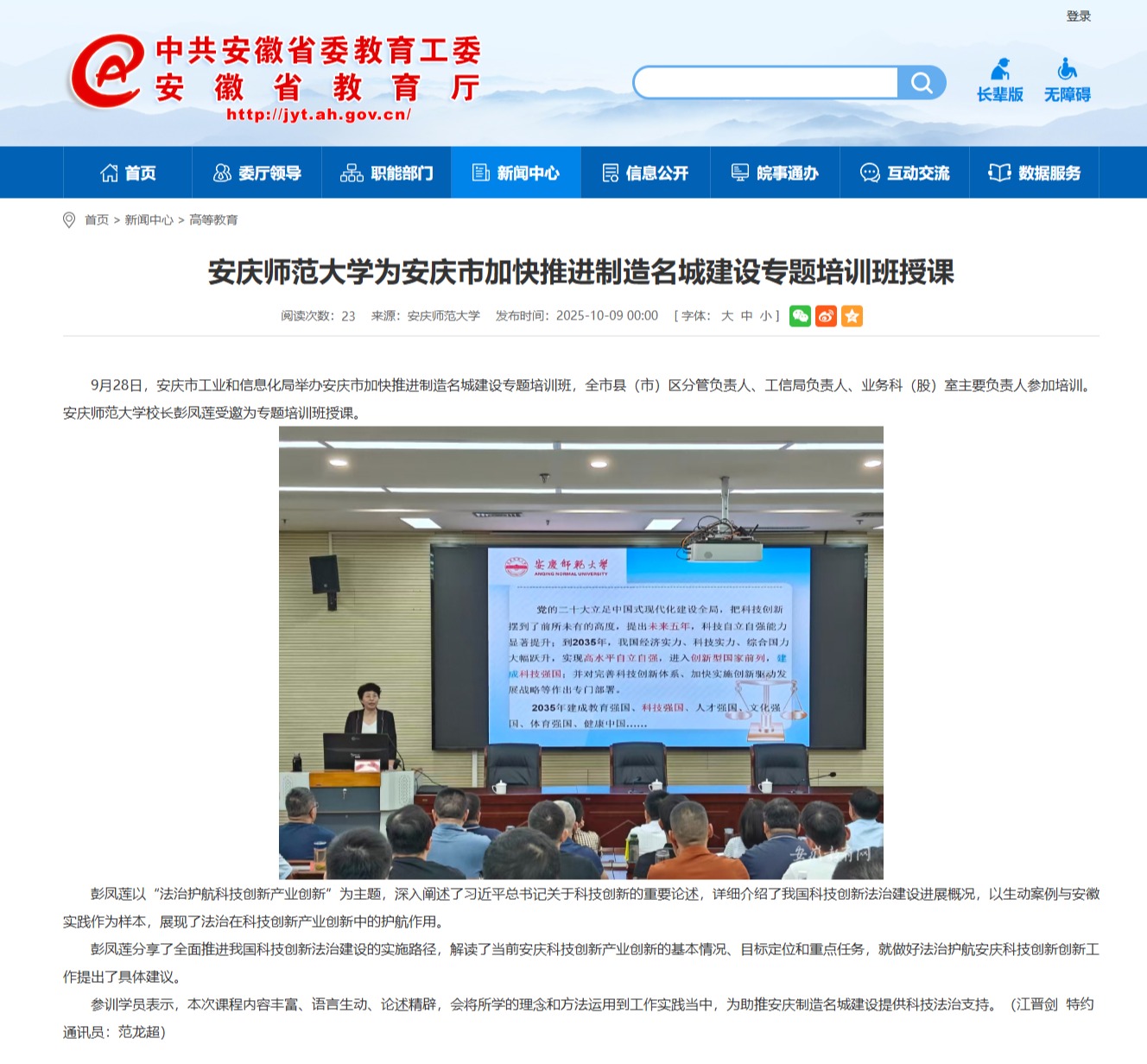 【安徽教育网】beat365平台唯一官网为安庆市加快推进制造名城建设专题培训班授课https://jyt.ah.gov.cn/xwzx/gdjy/40768424.html