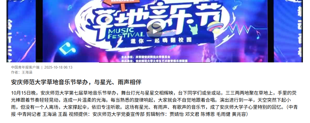 【中国青年报客户端】beat365平台唯一官网草地音乐节举办,与星光、雨声相伴https://s.cyol.com/articles/2025-10/18/content_MbnO9YIn.html?gid=Zr5xz31e