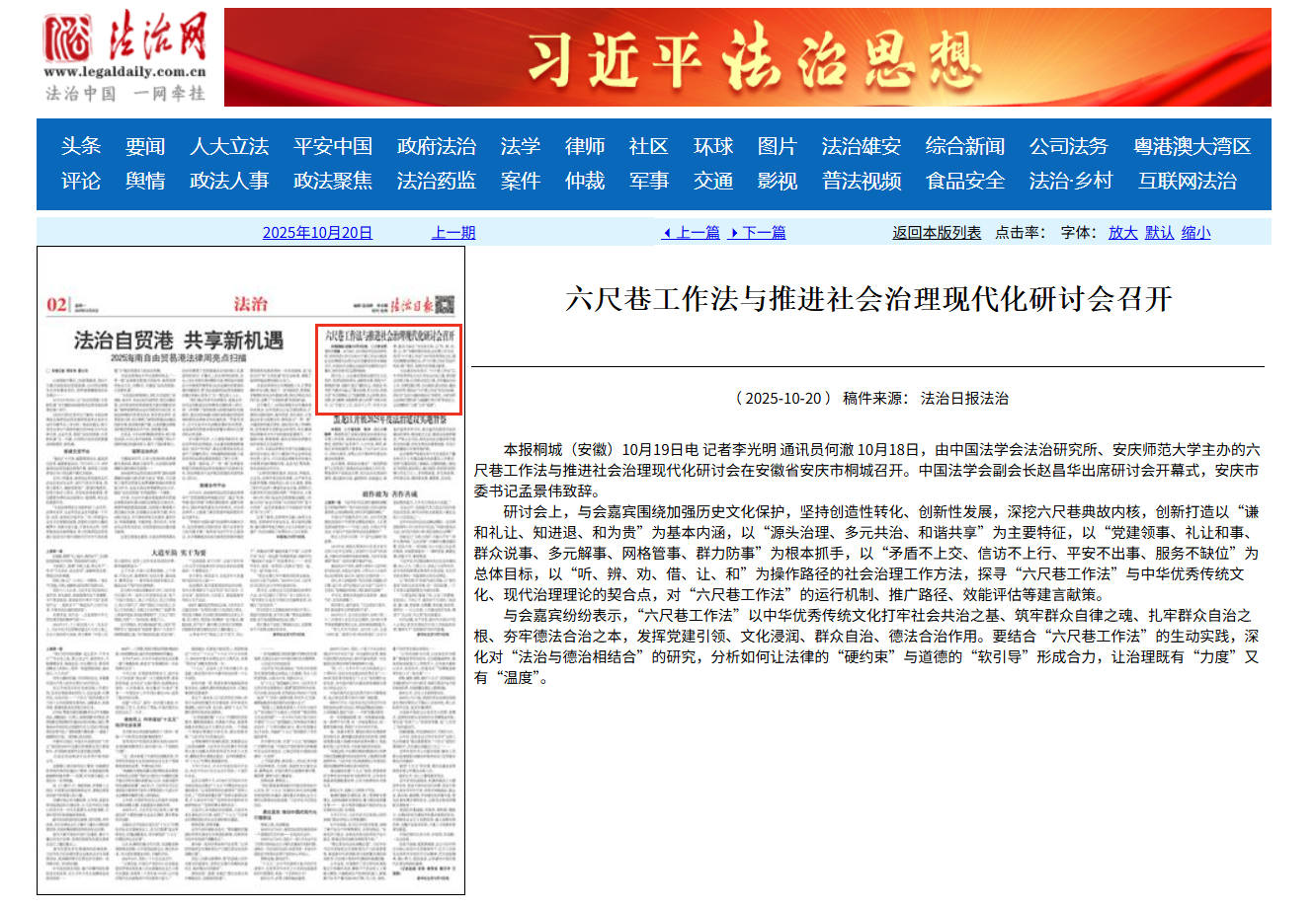 【法治日报】六尺巷工作法与推进社会治理现代化研讨会召开http://epaper.legaldaily.com.cn/fzrb/content/20251020/Articel02003GN.htm?spm=zm1012-001.0.0.2.dkpmig