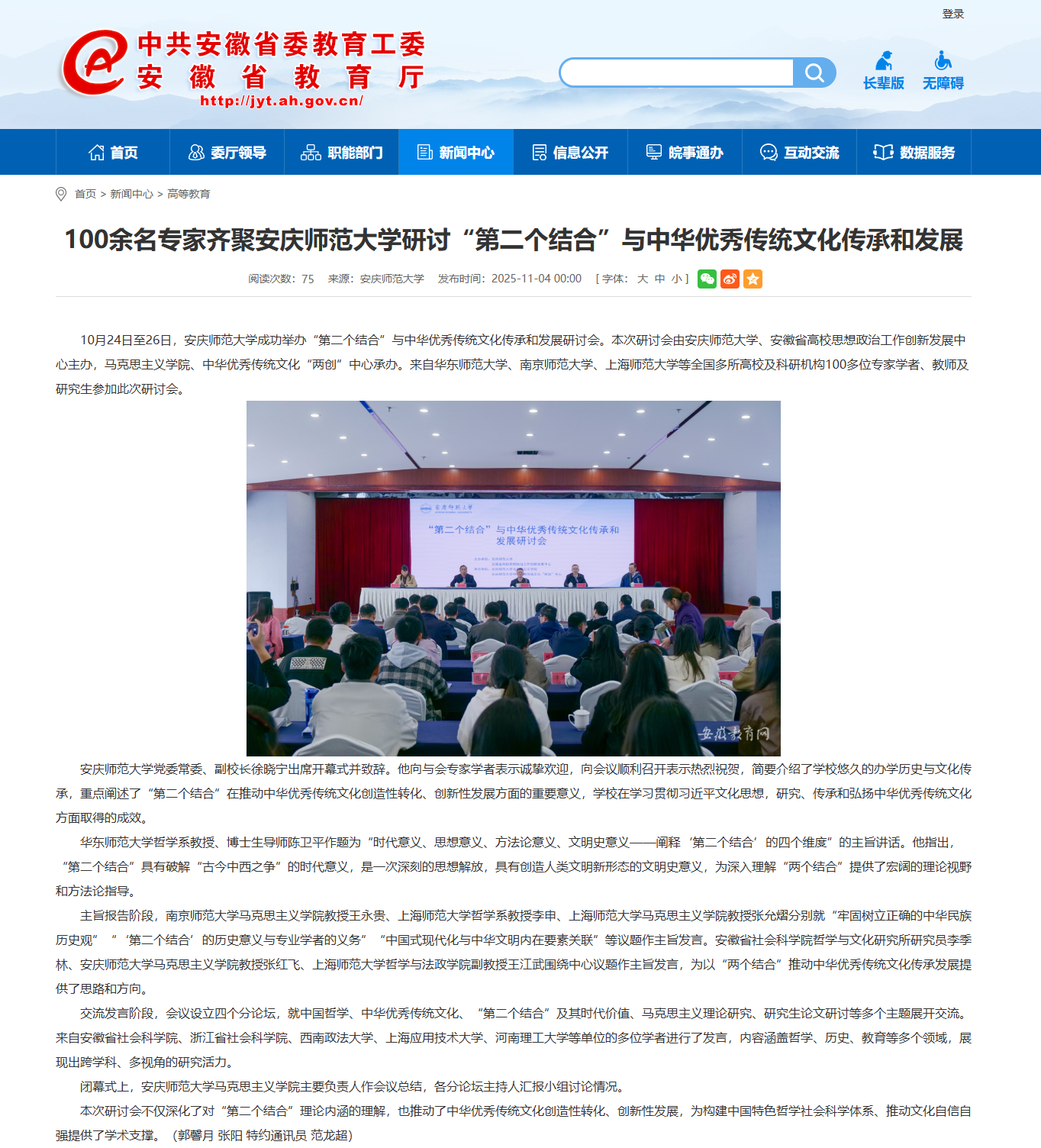 【安徽教育网】100余名专家齐聚beat365平台唯一官网研讨“第二个结合”与中华优秀传统文化传承和发展https://jyt.ah.gov.cn/xwzx/gdjy/40771465.html
