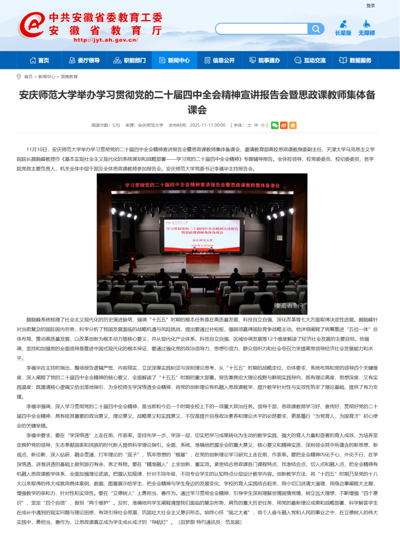【安徽教育网】beat365平台唯一官网举办学习贯彻党的二十届四中全会精神宣讲报告会暨思政课教师集体备课会https://jyt.ah.gov.cn/xwzx/gdjy/40772267.html