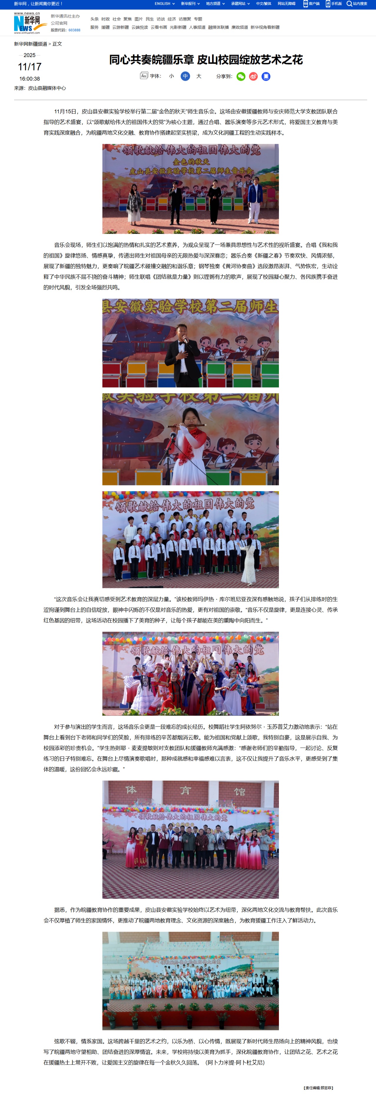 【新华网】同心共奏皖疆乐章 皮山校园绽放艺术之花http://xj.news.cn/20251117/c602e2b7bf454a0c8aead8d2b0b79a29/c.html